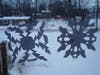 Paper snowflakes out of plain white paper always are a favorite of the kids to make during the winter. Start with a square piece of paper. Fold diagonal corner to corner, then in half and half again. Draw a random pattern with points and different shapes or make no pattern and let them cut as they like. Make sure that the kids do not cut through the center point. To help my little one, I colored in the area on the folded piece of paper he is not to cut. Unfold and hang from ceilings, on walls or in the windows.