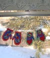 Have your child trace their mitten or if they don't have any mittens, have them make a mitten shape with their hand and help them to round it out. Cut out the pattern and encourage your child to decorate, they are only limited by their imagination. Hearts, circles, glitter, paint, markers, gems, squiggly lines etc. Using a hole punch or scissors, make holes in the mittens to string the ribbon through to act as a clothes line. Hang in a window to brighten dark winter days.