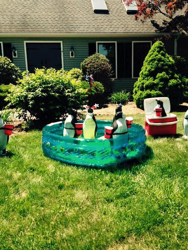 What started out as a Christmas display turned into a year round continually changing scene depicting both local events such as the Boston Waddlethon and Patriots games to national events such as the Penguins doing he ALS challenge. We have loved creating these displays as much as those who love to see them. It is our small act of kindness to our community with the sole purpose to elicit a smile.