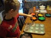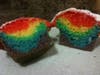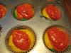 - Fill baking cups with small amount of each color in the order shown above. Bake as recipe calls for; let cool before frosting.
