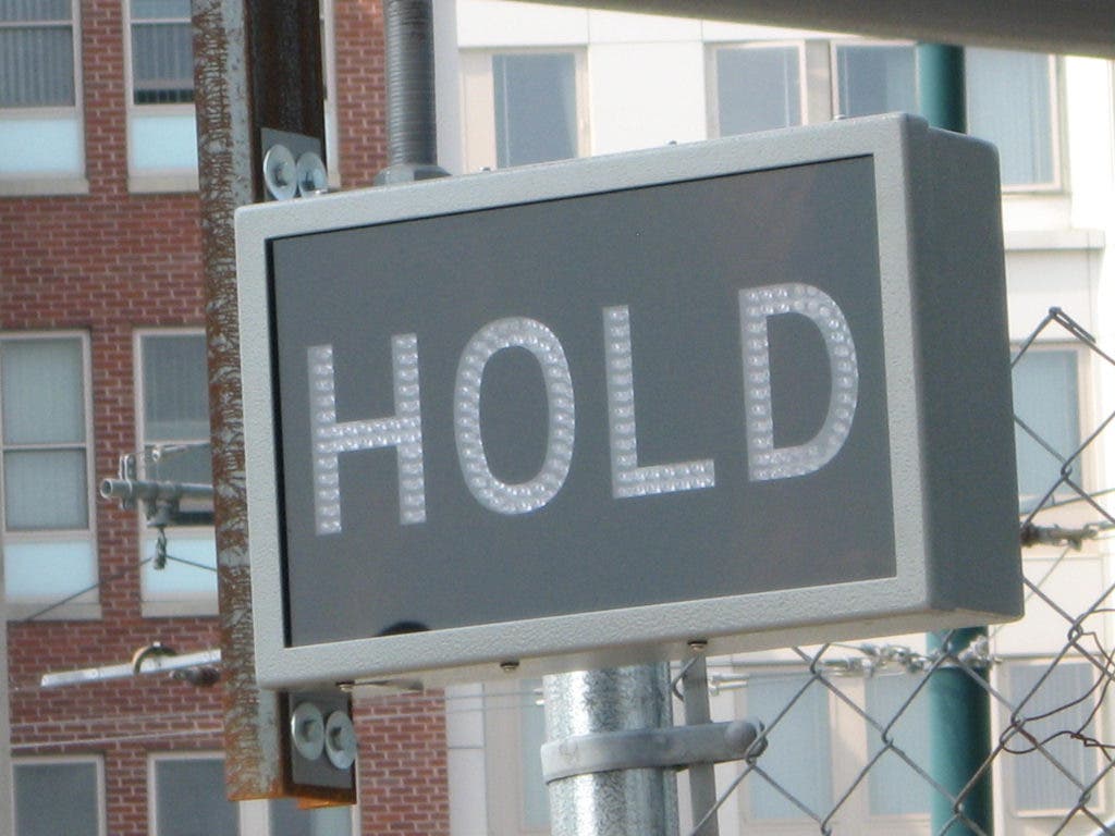 The “Hold” sign was a response to Red Line customers missing the trolley, said MBTA Spokesman Joe Pesaturo.