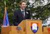 Students Erin McDaniel and Brennan Robbins along with 1992 graduate J. Peter Scoblic, senior staff member of the Senate Foreign Relations Committee and former editor of The New Republic, addressed the audience.
