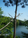 This is actually the latest in about a dozen Clean-ups we (LCWC - Big Heart Little Feet) have coordinated on the Dug Pond area since 2009. The last six have been collaborations with the Natick HS Earth Club. The students and their Faculty Advisor, Doug Milch, appear to be interested in becoming Environmental Stewards of the Pond and Island. I can confirm that their current President, Raghu Bhardwaj, and Vice President, Linda Nguyen, have participated in over a dozen initiatives in the last three years including Coolidge Hill, Pegan Cove, other trails, Earth Day, and Natick Trails Day. A good angle might be to interview them about some of these projects. Dug Pond is part of the "viewscape" of our new Natick High. It may not be part of the official property; but it's an important and exquisite resource. As you know, The Natick Recreation Dept. manages the Town Beach, however there is a good deal more habitat and shoreline that comprises this unique water body. Basically it's an under appreciated environmental jewel in Natick's Crown. It is used appropriately by kayakers, canoers, swimmers and fisherpeople. And sadly for decades it has been heavily abused by hard core party people and others who trash the island and shoreline. We've begun to take it back and establish a new ethic of use. In recent weeks we've found that by and large the party people are using the BHLF Barrels and Bins provided; but clearly we still have a lot of work to do. Some teachers have expressed an interest in utilizing the unique habitat and understory of the island. Much could be done to heal the heavily eroded banks, particularly the runways beneath the rope swings. Compared to some of our other treasured woodlands and trails (Pegan Cove and the Natick Town Forest), there is a wonderful absence of bittersweet, knotweed, multiflora rose, etc. On the northwest point of the island I spotted an enormous red tail hawk nest (active because I could hear it "keening" during my visit), as well as beautiful wild blueberry bushes and a diverse woodland. A very large beaver inhabited a den near the old ice house (aka "Wall") (until it was sadly hit last year trying to cross Pond St.). At least two large Blue Herons, and a couple of mallard families work the cove and small pond along Campus Drive. It's an interesting and gorgeous area. That's why we're trying to get people "fired up" about taking better care of it. --Pat