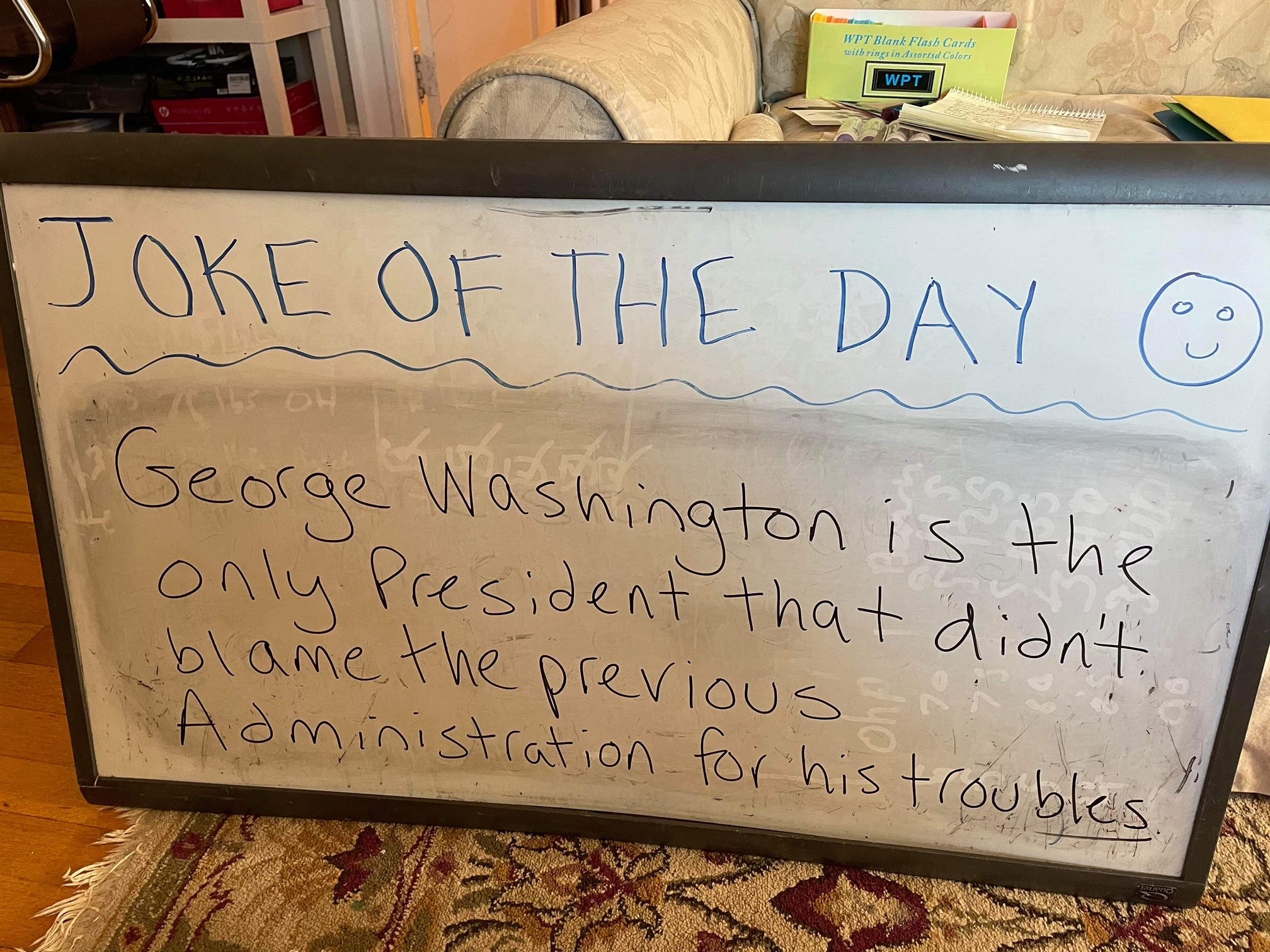 One person left a thank-you note near the joke board with a few dollars, as if Potts was a busker in a subway station. Just this week, someone left her a Christmas gift: the book "What If?: Serious Scientific Answers to Absurd Hypothetical Questions." People driving by sometimes stop to take pictures. One local woman takes photos of the daily joke to send to her grandson, Potts said.
