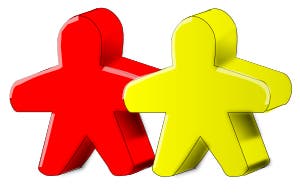 A small figure used as a playing piece in certain board games, having a stylized human form.