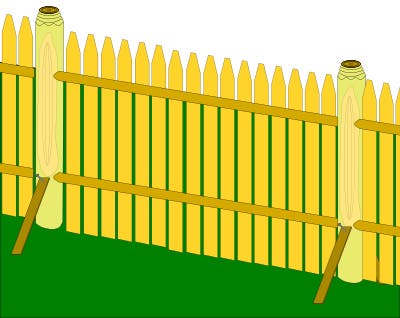 As Bob built his fence, he used props to hold the posts in place.