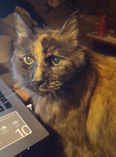 I'm trying to teach my cat how to use the computer. We use a laptop as realia. She seems to give knowing looks.