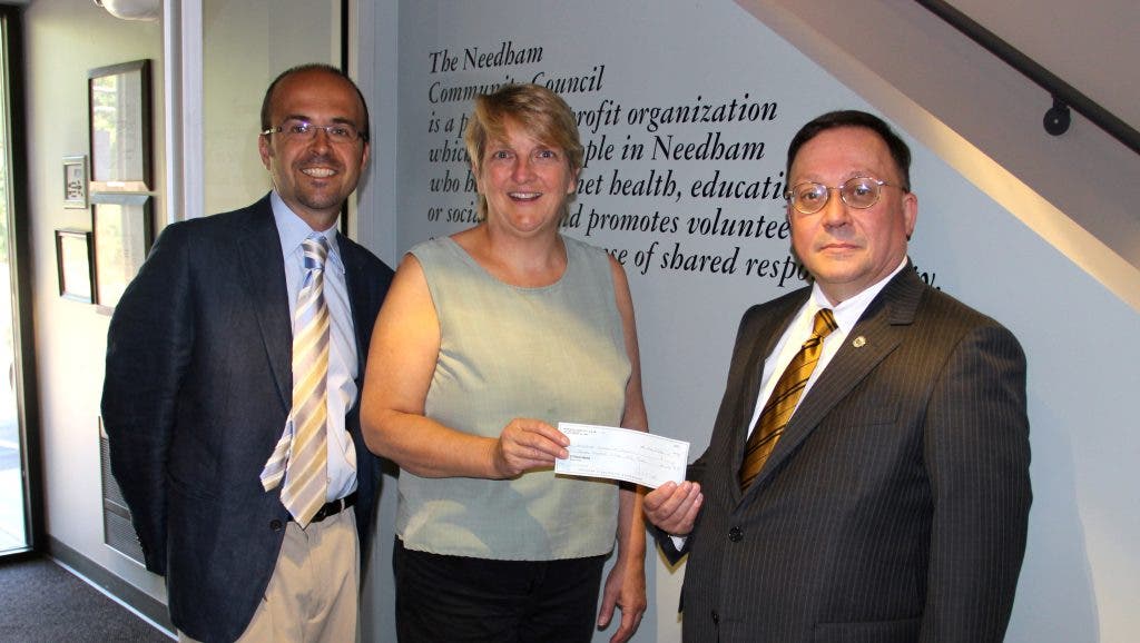 Pictured From left to right: Michael Centola (Norfolk Lodge A.F&A.M) Sandra Robinson, (Executive Director of the Needham Community Council) and Donald H. LaLiberte (Master, Norfolk Lodge A.F&A.M)