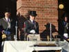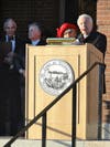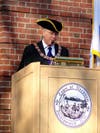 After the song, Selectman Moe Handel, Master of Ceremonies, gave the welcome address, and Needham 300 Town Criers Chris Gerstel and Ed Gagnon rang bells signifying the beginning of the rededication ceremony.