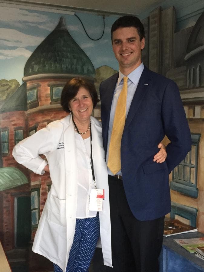 The Peters Group recently donated $5,000 to the Kids Fund at Boston Medical Center, which provides a vast array of services to Boston-based children and families in need. Pictured are Nick Peters, Financial Advisor at The Peters Group and Dr. Eileen Costello, Director of Pediatric Ambulatory Care at Boston Medical Center.
