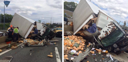 Delays on the Pike After Truck Flips, Spilling Produce Onto the Highway