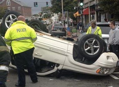 Driver Hurt When Jeep Flips in West Newton Square