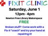 Free Fix-It Clinic on Sat., 6/1, noon-4pm at Newton Free Library