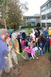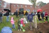 Staff, students and preschoolers from the Holway Child Study Center at the Barn helped plant the new trees, which will be "a lasting addition to Lasell's Green Campus."