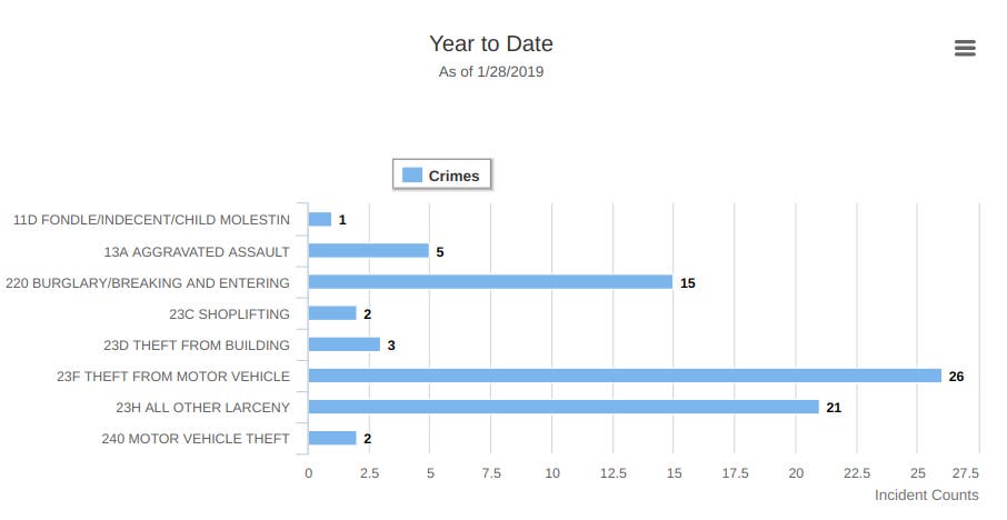 NEWTON, MA — Police are asking residents to lock their car doors when they park them, even if it's in front of their home, after some 13 unlocked cars were reported broken into last week. This For reference between Jan. 1 and Jan 28, there were 26 reports of a larceny from a motor vehicle, according to police data.