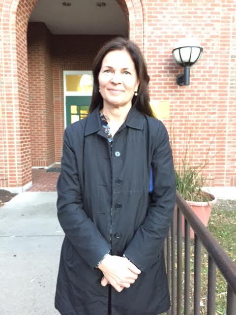 At the Newton Free Library, Maggie Alexander reflected on having just voted for Hillary Clinton.