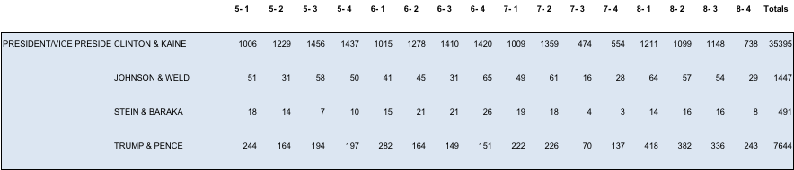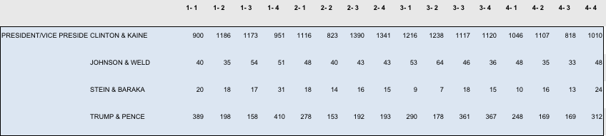 A breakdown of the presidential race and hotly contested ballot questions by precinct.