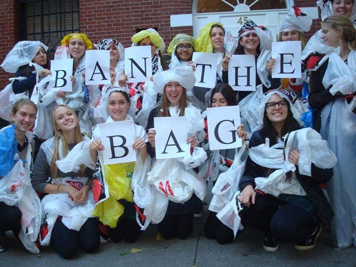 Officials proposed, and began debating, the proposed ban last year, arguing that only five percent of the townâs bags were recycled. A report by the cityâs group Plastic Bag Working Group can be found in this document.