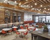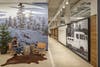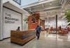 Rockport's new offices are located in a brick-and-beam building at 1220 Washington Street, with the interior designed by Boston-based architectural firm Baker Design Group. The space combines industrial-themed staircases, exposed brick, a main lounge area with a double-sided fireplace, common areas, bright windows and an open-concept cafeteria and was inspired by Rockport's New England heritage.