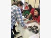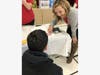Pictured on the left, Kristin Gibson, a Tax Director at PwC, explains her calculation method to Learning Prep student Michael Ippolito. On the right, Katie Jordan, a Tax Director at PwC, shares some insight with Learning Prep student Anastasia Farrell.