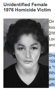 In 1976, the battered body of a young woman was found in the woods of Baltimore near a cemetery. Police still donât know who the woman was, but have always surmised that she was from the Boston area.
