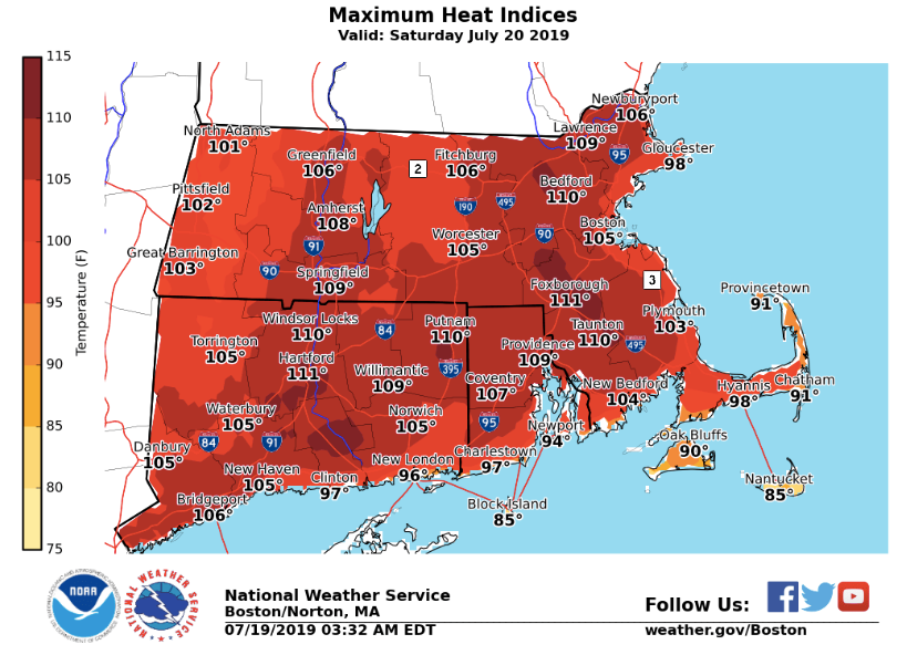 It's not exactly news that the summer is hot, but this is a bit much. The National Weather Service agrees and issued an excessive heat warning for most of Massachusetts from noon Friday to 8 p.m. Sunday as temperatures tickle triple digits.