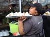 The festivities began with a ribbon-cutting ceremony with Mayor Setti Warren and Shake Shack owner and restaurateur Danny Meyer. Shake Shack employees then began circulating with treats from the menu including the Shack Burger (cheeseburger with lettuce, tomato and Shake Sauce), the ‘Shroom Burger (their vegetarian offering – a fried, cheese-filled portabella mushroom with fixings), cheese fries and a variety of shakes (made from frozen custard) including Boston cream pie, vanilla and strawberry.