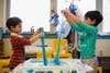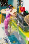 Students took part in a variety of activities, inspired by science, art, nature, imagination and Judaism. Arriving in bathing suits, they immediately dove into fun science experiments with water using tubes and funnels. The children practiced pouring into the funnels, while learning about gravity and how the water traveled from one place to another.