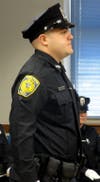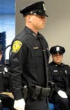 Officer Robert March’s police badge was pinned by his grandfather, retired Newton Police Officer Allan Ciccone Sr., and his mother, Newton Dispatch Center Supervisor Margie Ciccone.