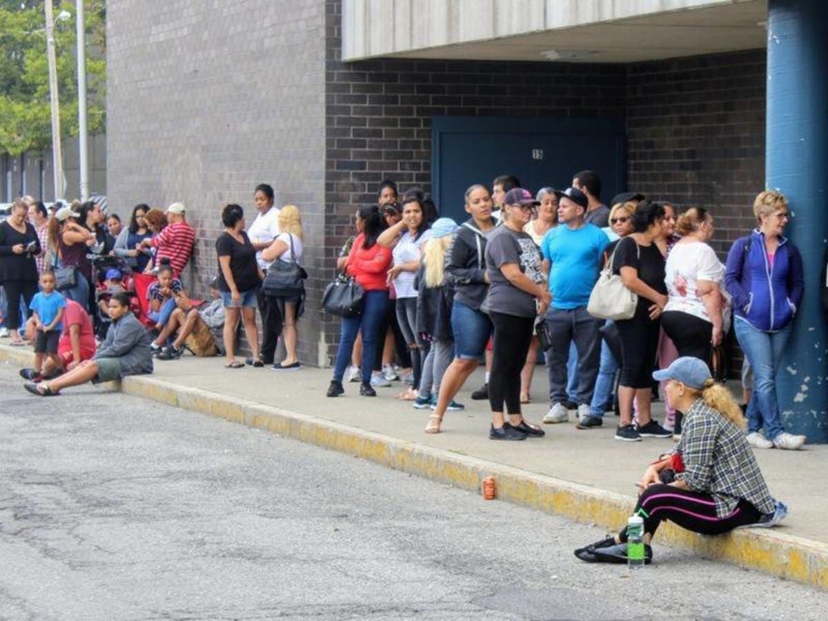 People line up to file claims with Columbia Gas at the Lawrence Public Library on Monday. The utility opened similar centers in Andover and North Andover on Tuesday. Photo by Dave Copeland/Patch.