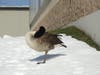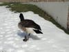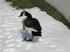 Update, Monday, Feb. 19: Doreen Laporte, who originally alerted us to the goose, reported, "Well, he was here up through Sunday. When we came in on Monday, he was gone and we havenβt seen him since. Good news isβ¦..we didnβt find any feathers either!"
