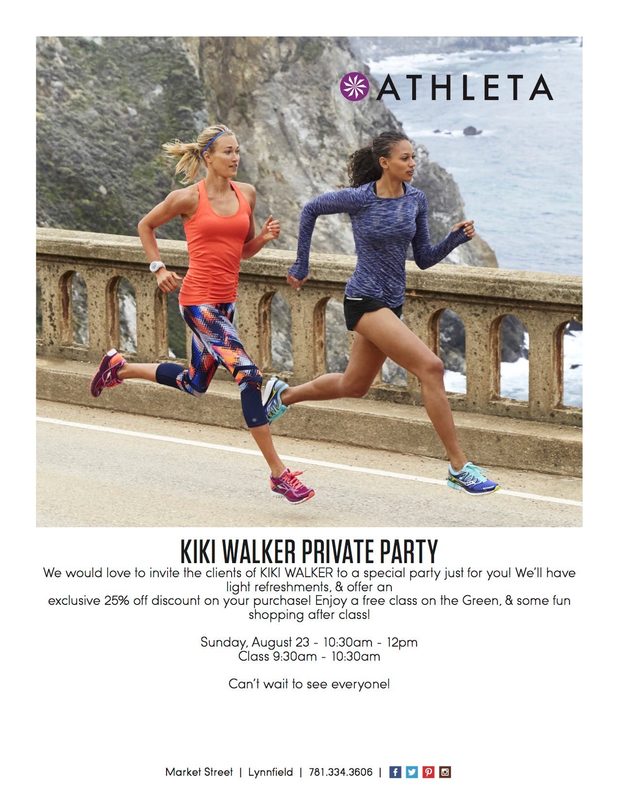 Join Kiki Walker Wellness at Athleta on Market Street in Lynnfield this Sunday, August, 23rd, for an exclusive fitness and shopping event.