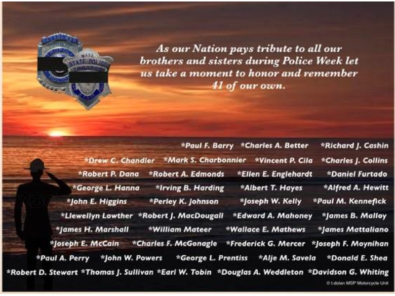 Massachusetts State Police reminds us on its Facebook page, “In 1962, President John F. Kennedy signed a proclamation which designated May 15th as Peace Officers Memorial Day and the week in which that date falls as Police Week. Currently, tens of thousands of law enforcement officers from around the world converge on Washington, DC to participate in a number of planned events which honor those that have paid the ultimate sacrifice.”