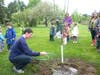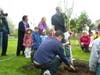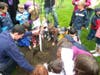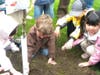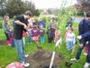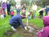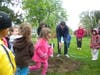Elisabeth Amen Nursery School students help plant apple trees for Jamba Juice grant.