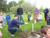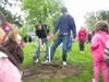 The preschool students, whose ages range from 3 to 6, helped plant the trees by filling in the hole with dirt after the tree was put in the ground. Once the trees are about four years old, they will produce apples. Then students will harvest the fruit that fall.