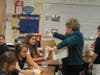 Foxborough Regional Charter School English/language arts teacher Charlotte Sheer seeks parents to count stamps -- which have filled gallon-sized Ziploc containers.