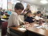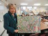 Now, one of the students' stamp art pieces features 11 figures, representing the 11 million people.