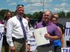 Norton High School faculty, students, alumni and their parents said goodbye to outgoing principal Raymond Dewar today in an organized flash mob. About 25 people showed up to wish him well as the new principal of Quabban Regional High School in Barre. Current assistant principal Megan LaFayette will take over his position.