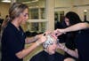 They don’t start working on clients right away, however. Senior Ashley Gardner, of East Bridgewater, said she practiced on mannequins and other cosmetology students before she started cutting other people’s hair. When she started working on clients, she worked with her other students, which helped to give her confidence. In addition, she was given constant supervision by Hathaway.
