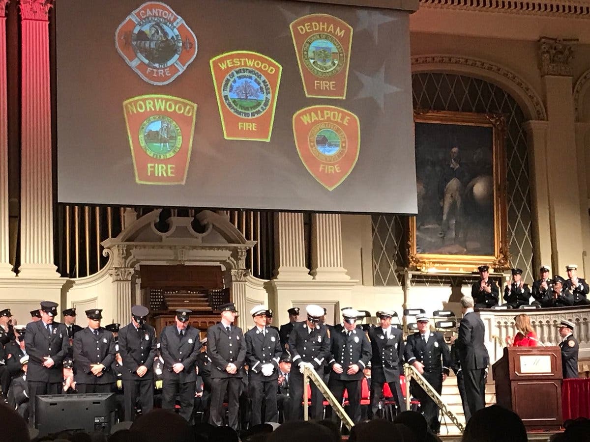 NORWOOD, MA — Members of the Norwood Fire Department were honored Tuesday for their response to two incidents.