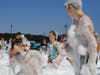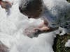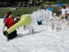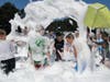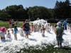 With at least 150 kids at the event, many dove into the suds, appearing moments later looking like a Frosty the Snowman in July. Even the parents who inched away from the expanding foam couldn't help but walk through the white mess.