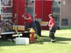 The fire truck not only was on hand to supply the foam, but the back of the vehicle served as a rinsing station as well.