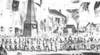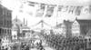 When the procession reached the location of the old Pine Tree in Wilson Square, Mr. Peabody's barouche passed the lines of Military and Fireman. As he passed under the arch at the head of the street, a band struck up “Home Sweet Home” and then another band chimed in with “God Save the Queen.” Now the students of Holten School came into view, each student alternately waving an American or British flag.