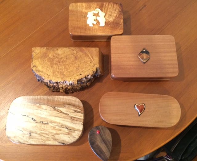 Jochimsen makes large and small boxes each one designed a bit different. She sells them both locally and nationwide in stores across the United States. Currently she produces her crafts in a space in Peabody Square. Prices range from $15 to $60.