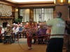 Paki, a.k.a. Patricia Viero, of Hula Aloha Dancers in Concord, demonstrated several Hawaiian dances as Brooksby Village residents sat dressed in their straw hats and Hawaiian shirts. She also gave some residents some quick lessons on how to sway from side to side and use their hands to motion to the song, "Pearly Shells."