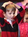 Lots of laughs and songs as local youngsters accompany Dara VanReemortel in familiar songs.