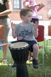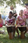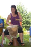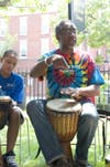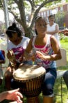 The drumming session, which closed out the afternoon, took place in the library courtyard under a big tent.