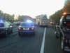 "I was minutes away from this when it was dispatched over the air so I took to the highway and headed for the scene. Upon my arrival there were at least 2 vehicles involved 1 of which had lost control and subsequently traveled across all 4 lanes of the northbound side went airborne through a highway sign and finally coming to rest on its side in the woods to the right side of the roadway and bursting into flames," writes Moura. The 2 right lanes as well as the breakdown lane of the highway were shutdown so officials could work the scene. The roadway was completely open to all traffic around 8:30 p.m."