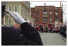 It was a somber scene along Lowell Street -- the only audible sounds among the several thousand people and firefighters lining either side of the street those of camera shutters clicking and helicopters circling overhead.