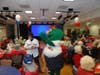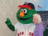 Residents were awash in Red Sox hats, jerseys and even some red sox to welcome Wally who burst into the McIntosh Clubhouse function hall just after noon to the Dropkick Murphy's "Shippin Up to Boston."